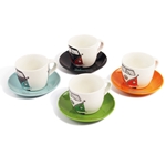 Zestaw 4 kolorowych filiżanek do espresso z wizerunkiem kultowego busa VW T1.