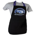 Czarny fartuch dla kobiet i mężczyzn z klasycznym logiem Volkswagena z VW T1 Bus.